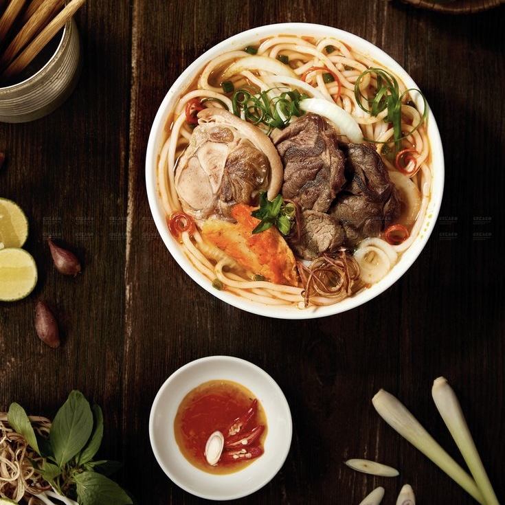 Острый говяжий суп с лемонграссом — гордость Хюэ. Не путать с фо: более насыщенный вкус и пряный бульон.